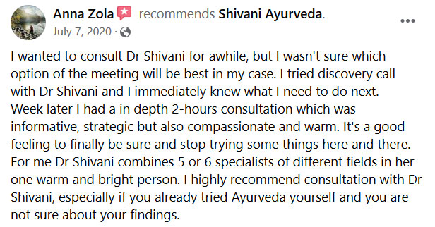 Save your time and money, as you will get accurate advice from 18+ years Internationally experienced Ayurvedic Doctor.